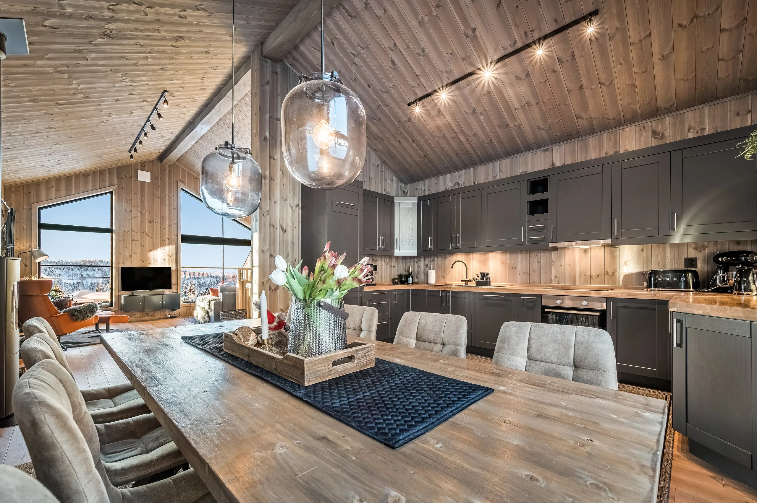 Du velger hytte, design og interiør. Vi bygger og tar oss av hele prosessen. Vi gjør hytta helt ferdig - utvendig fra tak til terrasse, og innvendig - i alle rom. Vi leverer fast inventar i valgt design. Slik som monterte og bruksklare kommoder, skap og senger, sanitærutstyr og hvitevarer. Og selvsagt spisebord og stoler.